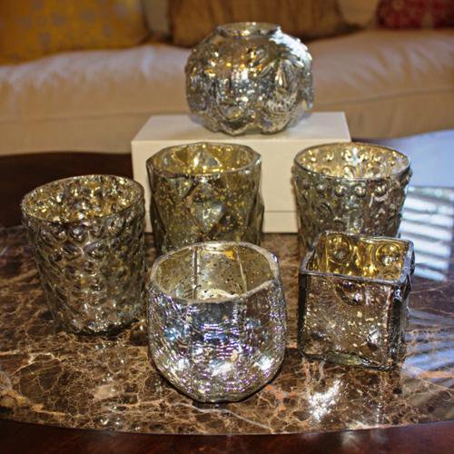 Our antiqued mercury glass candle holders recreate that vintage romance with flickering candlelight.